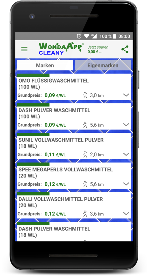 Die Themenapps von WondaApp schreiben das groß, was die Supermärkte nur ganz klein schreiben: Den Grundpreis! Bevorzugst Du Markenqualität zum besten Preis? Wechselst Du gerne die Marken? Suchst Du ein günstiges Upgrade von der Eigenmarke zum echten Markenprodukt? Dann passt die Sortierung nach Grundpreis perfekt zu Dir!